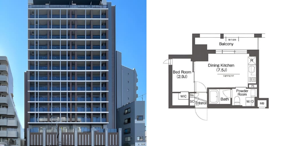- 賃料17万円・管理費1万円と築浅1LDKとしては相応の設定です。敷金1ヶ月・礼金1.2ヶ月で初期費用を抑えつつ、最新設備が整った快適な住環境を手に入れられます。