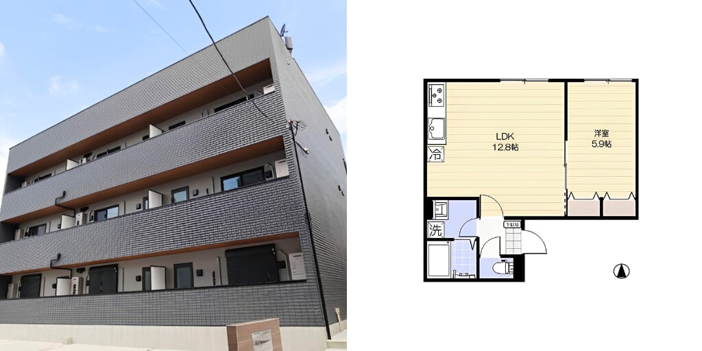 2023年12月築の築浅物件で、耐震・耐火構造に優れ、エアコン全室設置、フローリング仕様で生活動線も考慮された設計。システムキッチンやカウンターキッチン、浴室乾燥機、温水洗浄便座など、日々の暮らしを快適にする設備が充実しており、単身者はもちろんカップルや新婚さんにもおすすめです◎