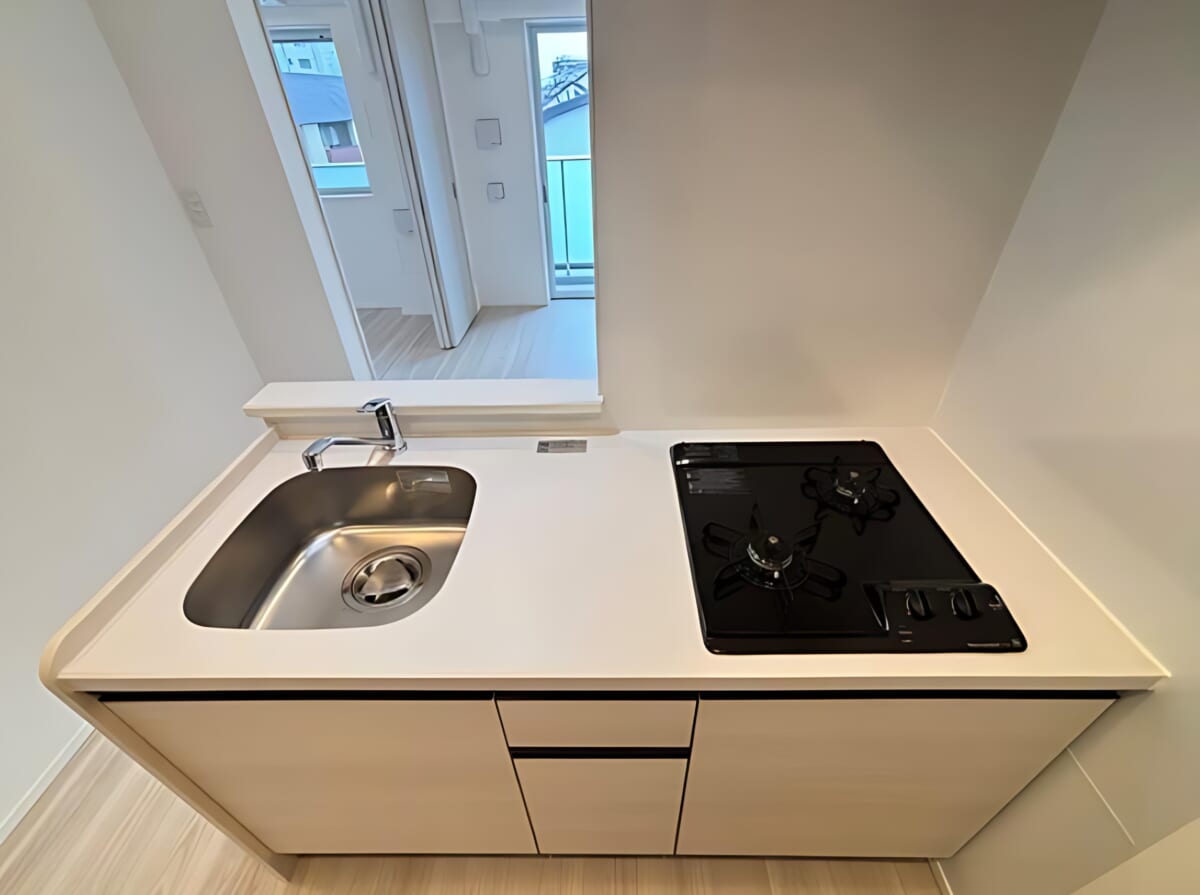 1LDK・35.07㎡の間取りは単身者から二人暮らしまで対応可能で、全居室フローリングやカウンターキッチン、浴室乾燥機・追い焚き機能付きバスルームなど、暮らしを快適にする設備が揃っています。新築物件のため、キッチンや浴室など未使用で清潔感があり、快適な新生活をスタートできます!