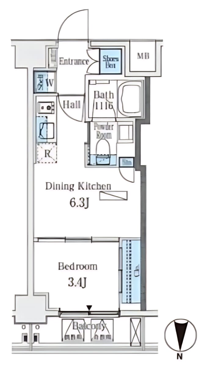 • 1DK・25.26㎡の間取りはコンパクトながら機能的で、単身者の暮らしにちょうど良い広さを確保しています!
