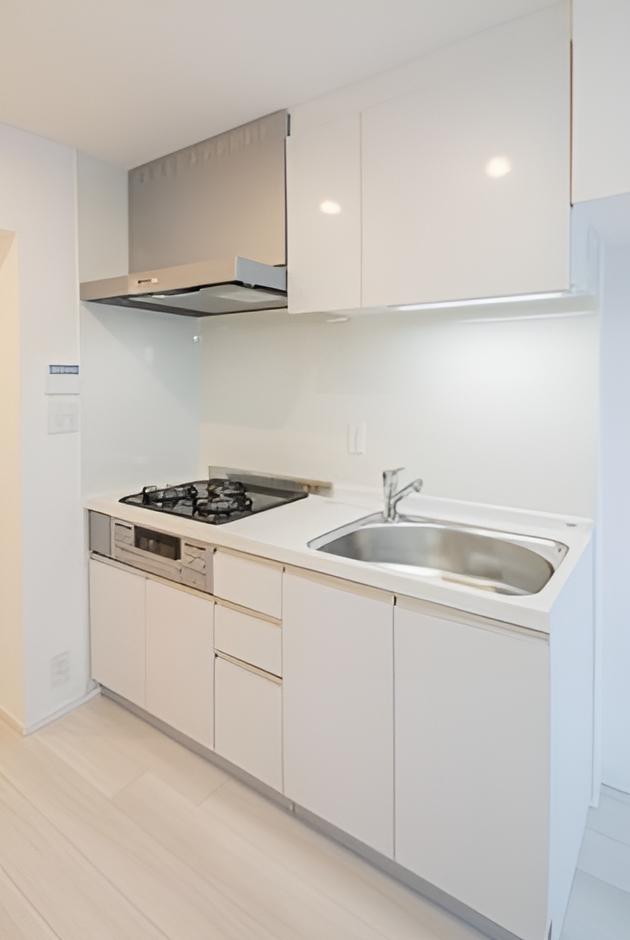 システムキッチンは2口ガスコンロ対応で自炊派の方にも嬉しい仕様です♪